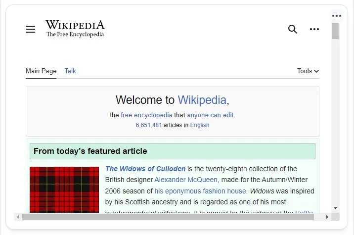 If you want to test a page, you can use the following URL: https://en.wikipedia.org/wiki/Main_Page